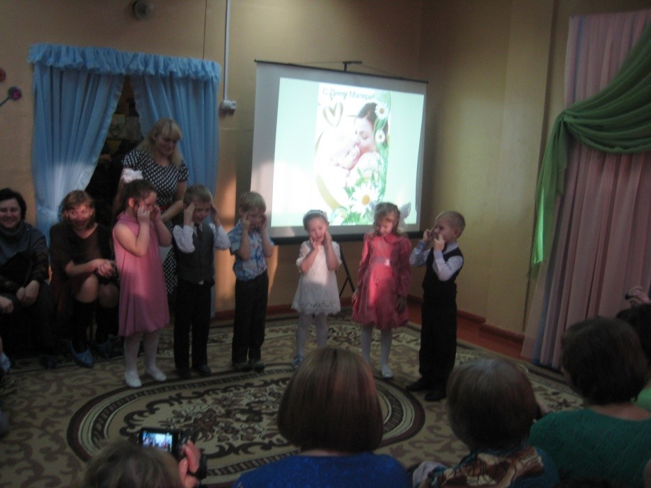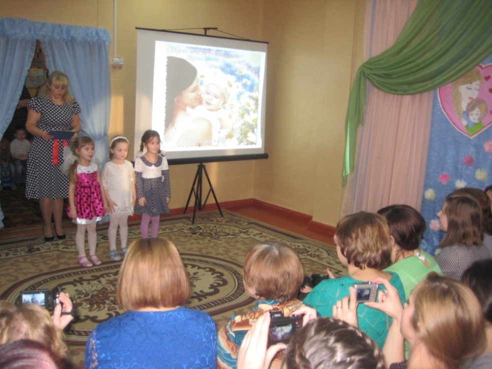 Накануне «Дня матери» в нашем детском саду состоялся праздничный концерт под названием  «Сердечко для мамочки».  В концерте приняли участие воспитанники средней, старшей, подготовительной к школе группы, семья Семеновых – мама Ольга и дочка  Полина с песней «Мама – доброе слово!». На протяжении всего концерта дети дарили мамам задорные танцы, проникновенные стихи о самой доброй, нежной маме, песни.  В исполнении ребят старшей группы присутствующие увидели сценку «Что за дети нынче, право?» Наибольший восторг у родителей вызвал танец с шарфами в исполнении воспитанников подготовительной группы. Красочная презентация еще раз напомнила всем, как прекрасно быть мамой, и как хорошо, когда вокруг слышен детский смех. В завершении концерта прозвучала самая нежная, трогательная песня «Мама». Каждый ребенок подарил своей неповторимой маме подарок, изготовленный своими руками.