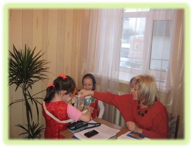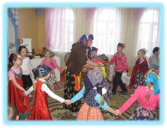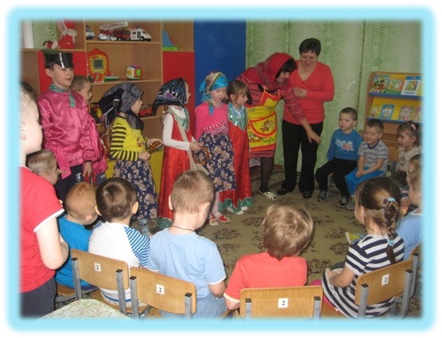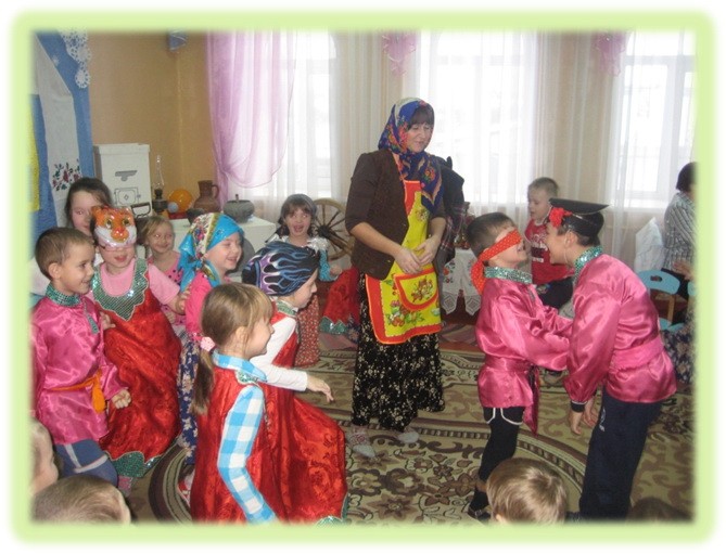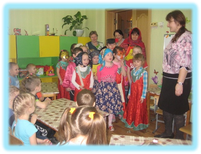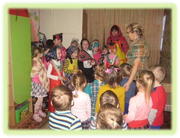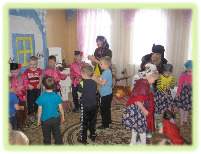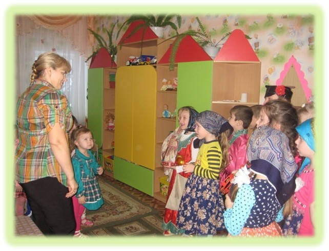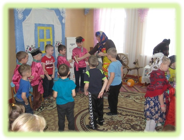 Хороший эмоциональный настрой подарили «ряженые» детям и сотрудникам детского сада. Они исполняли песни, присказки, заклички, прославляли Коляду, водили хороводы и, конечно же, не обошлось без святочных гаданий. Хозяйка избы угостила всех участников ароматными блинами. У всех участников колядок было веселое, праздничное настроение.
