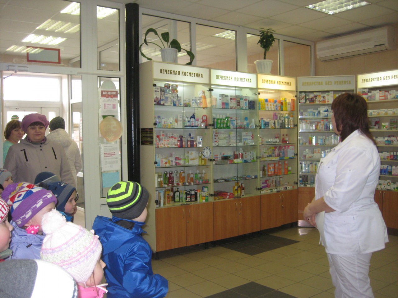 С целью ознакомления дошкольников с профессией фармацевта, содержании и значимости их труда для жителей города 1 апреля с воспитанниками старшей группы была организована целевая экскурсия в аптеку «Доктор Столетов».