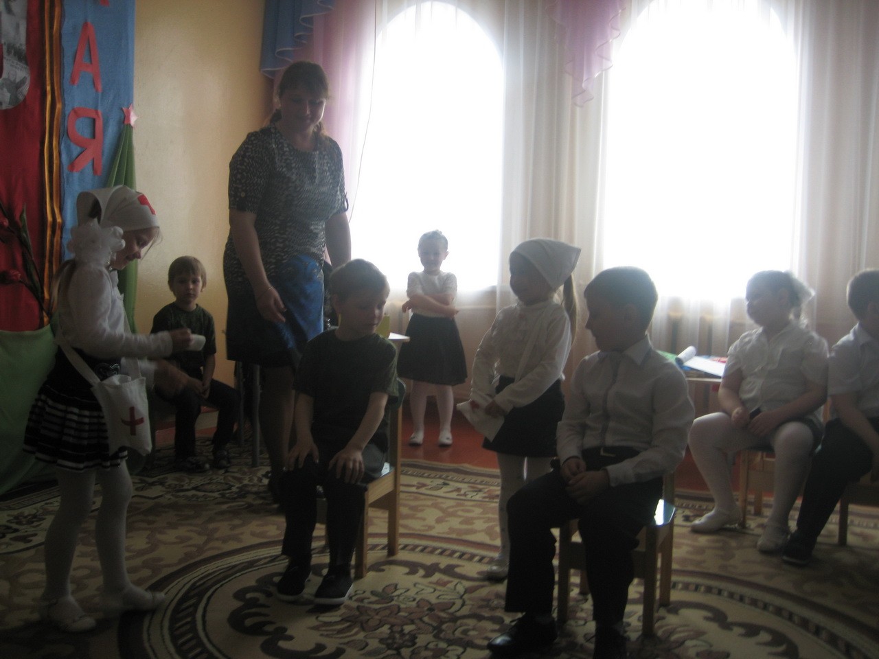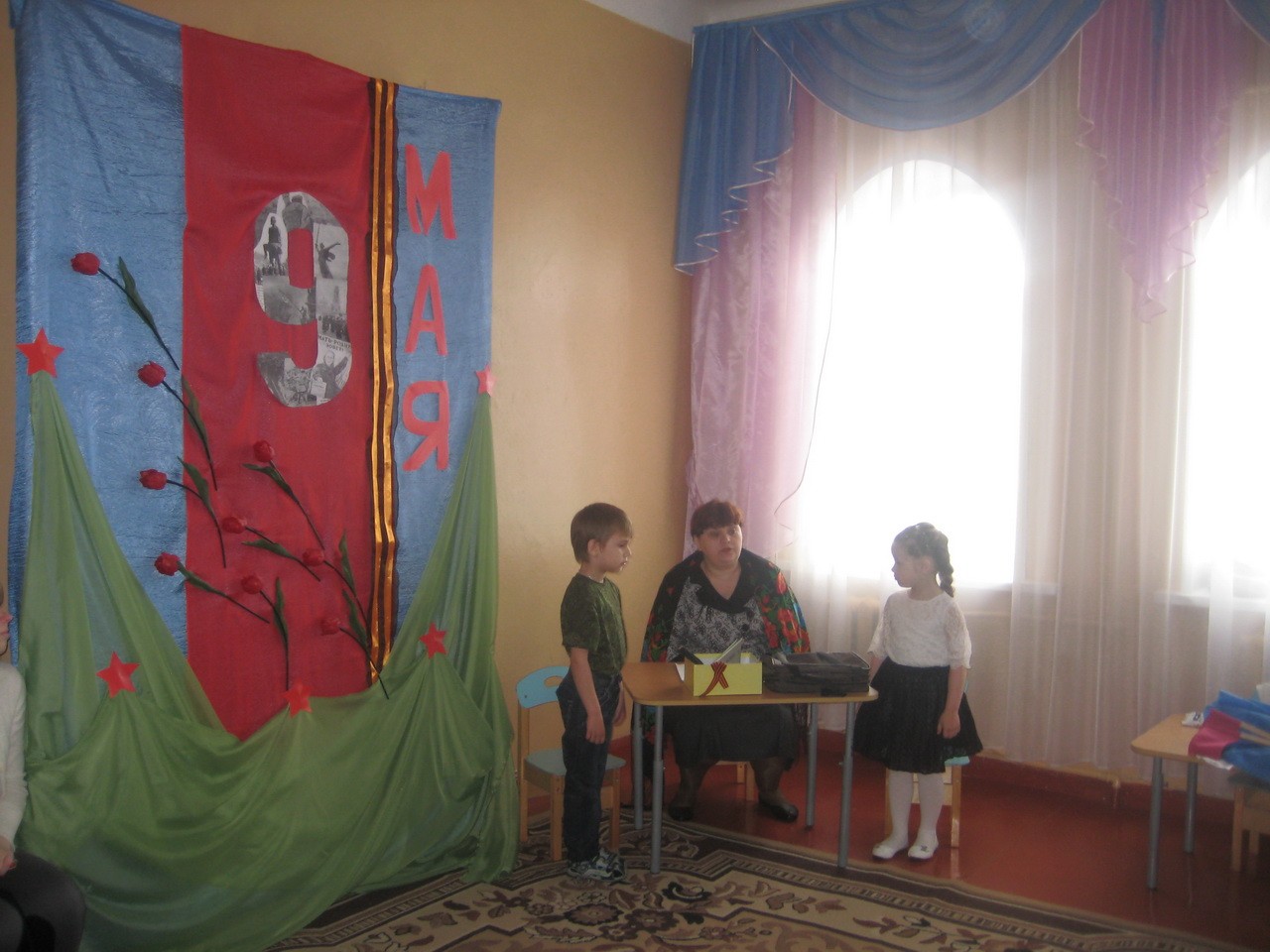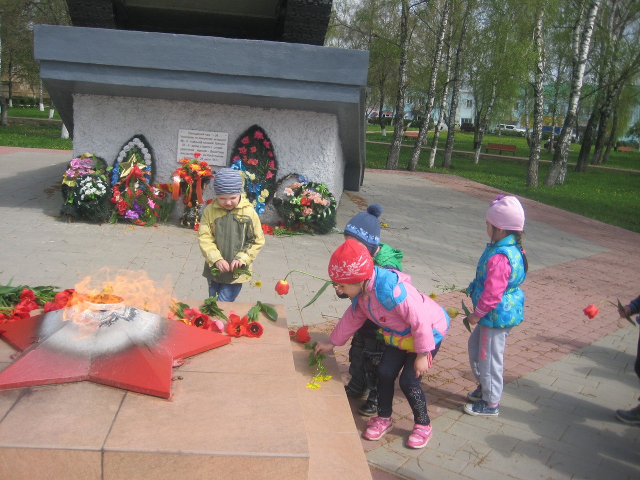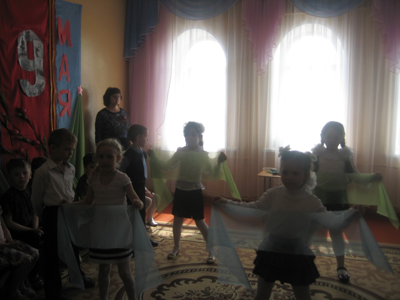 6 мая в детском саду, в старшей и подготовительной к школе группах,  прошли праздничные мероприятия, посвященные Дню Победы. Ребята исполнили песни военных лет и о мире, читали стихи, «читали фронтовые письма», исполнили частушки. Мальчики  подготовительной группы задорно исполнили танец «Десантники»,  не было равных девчонкам, исполнивших танец «Морячка». Танец «Синий платочек» перенес присутствующих в те далекие военные годы. В торжественной обстановке старшие дошкольники почтили память своих прадедов. Праздничные мероприятия завершились  традиционным возложением цветов к Вечному огню и Стеле героям землякам.