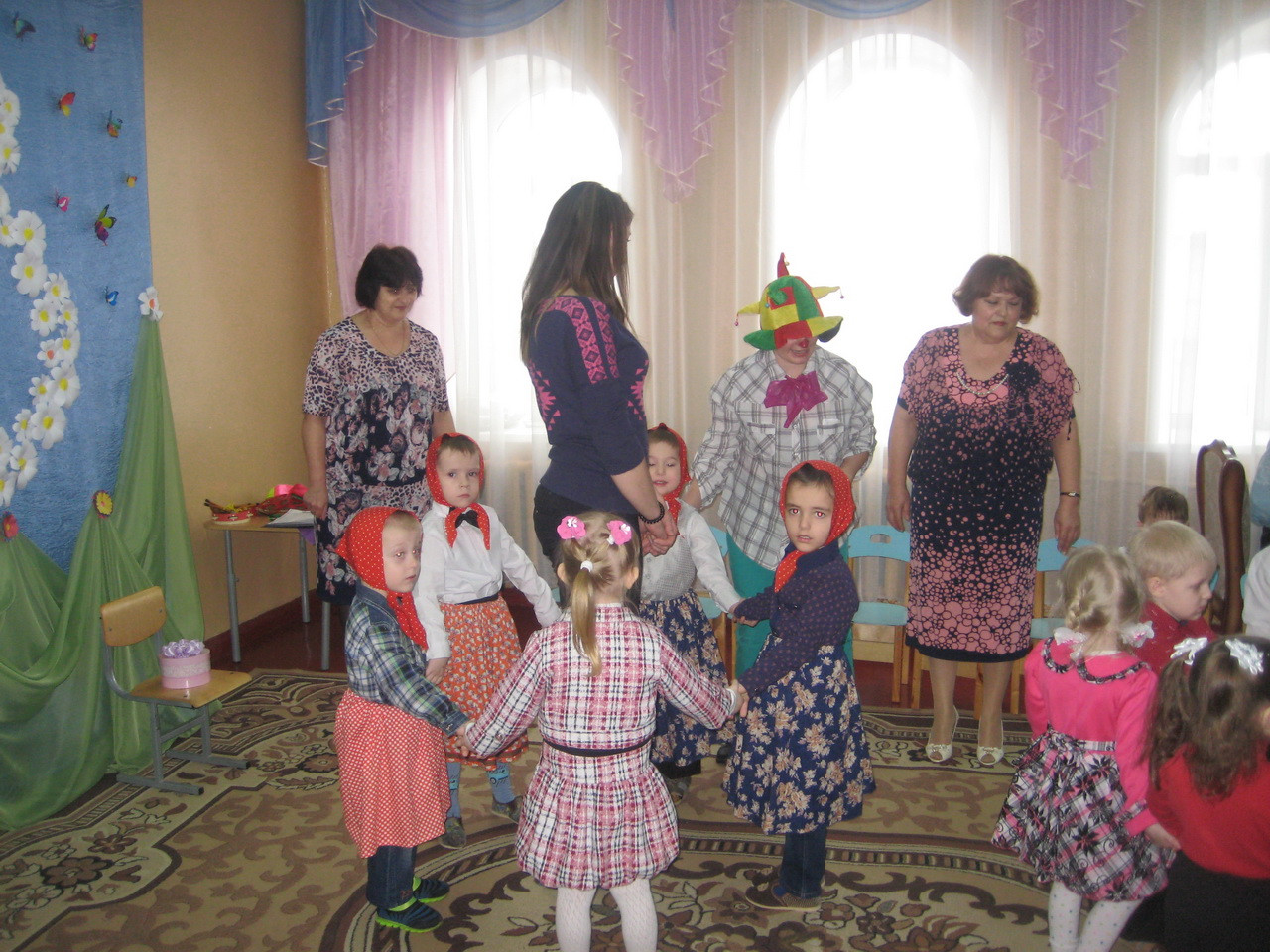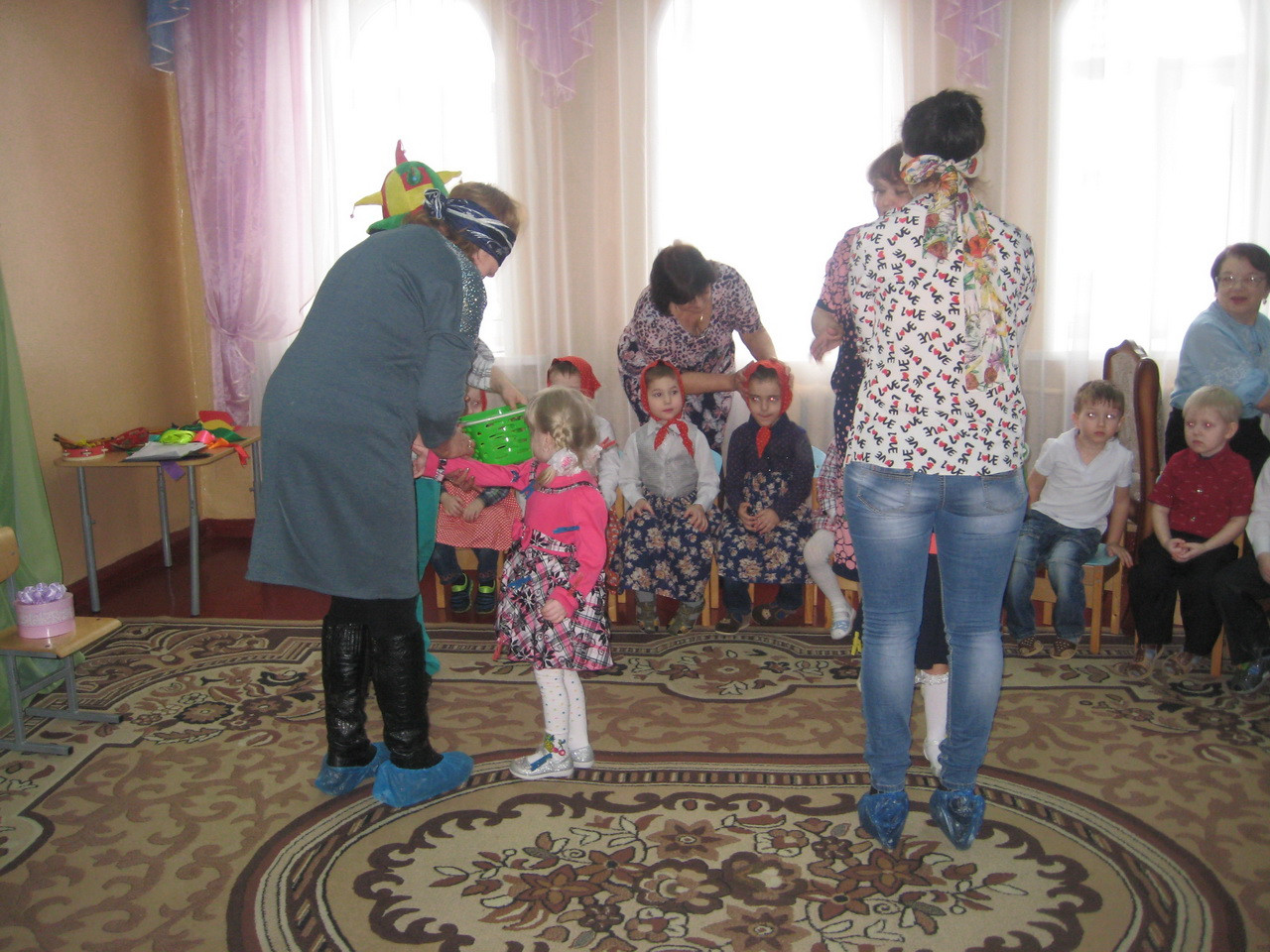 Мальчики младшей группы подарили мамам танец «Если был бы я девчонкой», а веселая карусель собрала в круг детей, мам и бабушек. Веселый клоун приготовил для мам шуточную игру: с закрытыми глазами необходимо найти и снять со своего ребенка все прищепки, прикрепленные на разные части одежды.